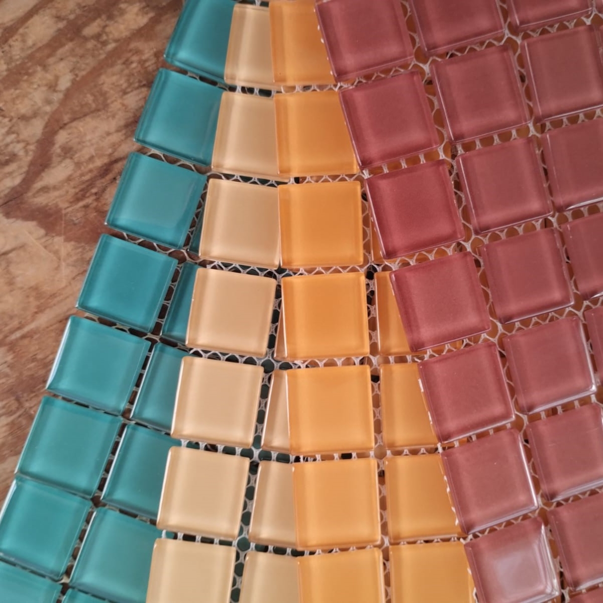 KTS - Kit Summer - pastihas cristal 2,3x2,3cm - contendo 4 cores diferentes: verde mar, creme, laranja claro, rosa antigo. Medida de cada placa 10cm x 30 cm. Cada placa contém 48 pastilhas. Total de pastilhas do Kit: 192 pçs